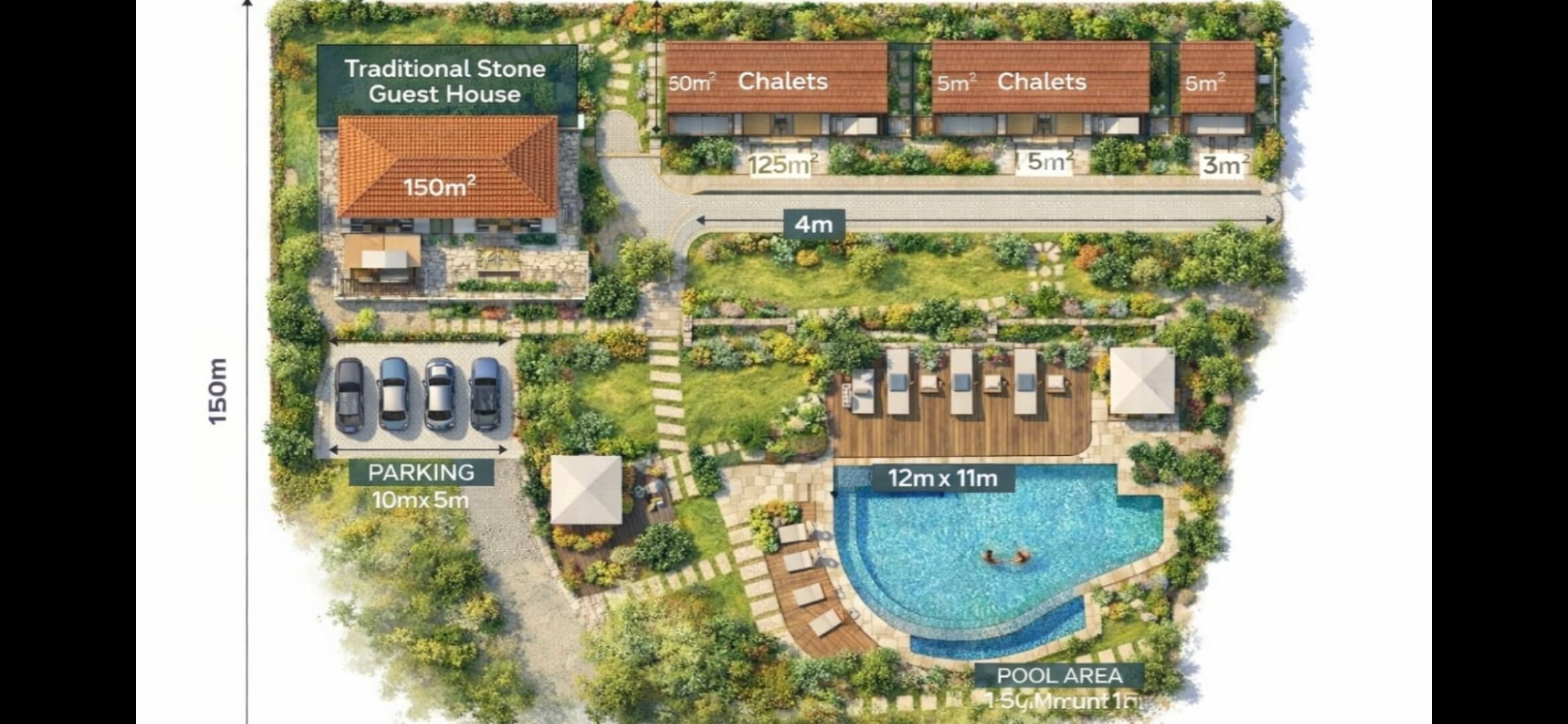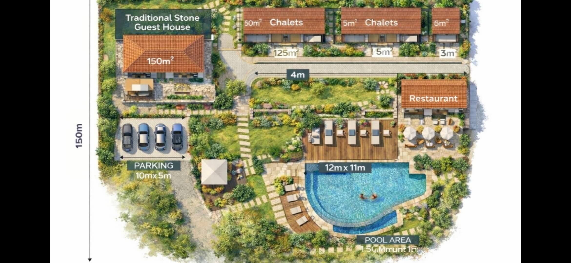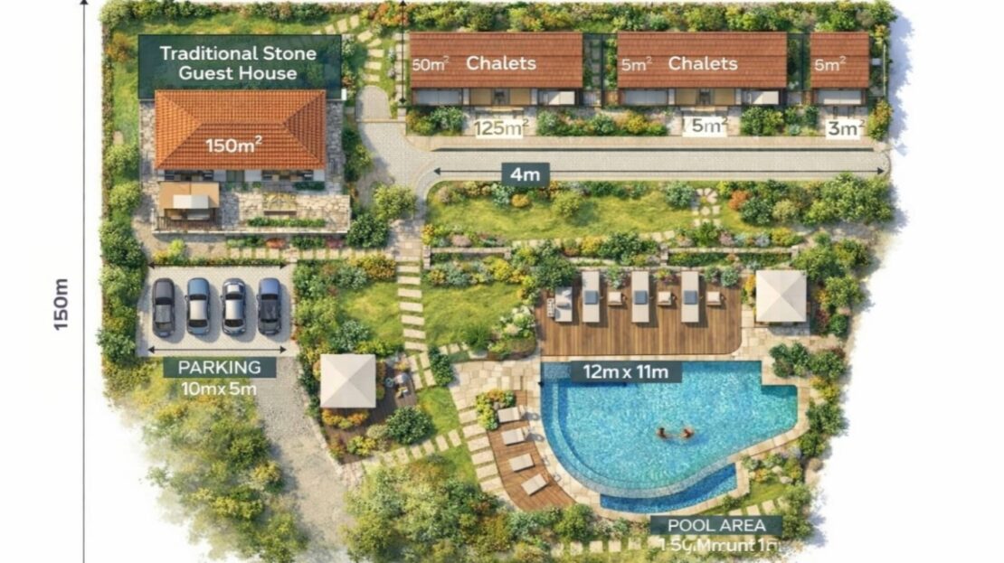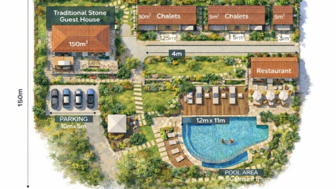 It’s suitable for a Small villas project or a small tourist development (Chalets/Duplexes).